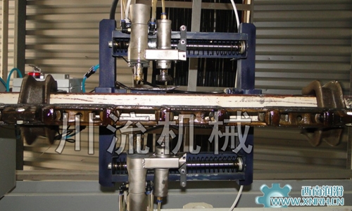 系統(tǒng)實際工作時,根據(jù)控制器的指令,打開氣動電磁閥,壓縮空氣將注油執(zhí)行機構(gòu)推移至行走起點,此時伸出定位桿,當(dāng)滾輪與定位桿接觸時,注油執(zhí)行機構(gòu)由滾輪帶動與輸送鏈同步運行,定位桿觸點反饋信號至控制器,此時注油嘴伸出與潤滑點對接并注油,加油結(jié)束注油嘴與定位桿先后回收復(fù)位,同時注油執(zhí)行機構(gòu)在壓縮空氣作用下滑動至行走起點,等待下一個走輪的注油工作開始。